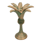 Portacandele resina oro verde palma tondo 1p cmø15,5h20,5