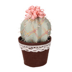 Cactus tessuto con fiore verde rosa tondo cmø13h24