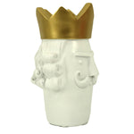 Portavaso resina viso re oro e bianco cm14x13h23