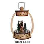Palla di vetro led legno lanterna naturale cm17x13h23,5