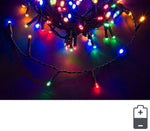 Catena 96Led, Luce Multicolore, Dimensione Led 5Mm Non Sostituibili. Filo Verde. Lunghezza Totale Filo 5,05Mt, Lunghezza Cavo Alimentazione 0,3Mt, Lunghezza Filo Luci 4,75Mt, Distanza Led 5Cm. 8 Giochi Luce Con Memory. Timer On-Off 6/18 Ore. Per Uso Interno-Esterno Ip44. Con Colour Box. Funziona A Batteria 3Xaa Non Incluse.