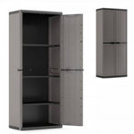 Armadio in resina con ripiani regolabili, colore grigio/nero.