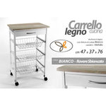 Carrello da cucina bianco con cesti e rotelle cm 47 x 37 x 76 h