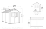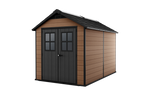 Casetta dal design classico con tradizionale finitura effetto legno, dotata di elevata resistenza e durabilità. La struttura realizzata con pannelli a doppia parete e con rinforzi in metallo resistente agli agenti atmosferici (eccetto gli eventi climatici più estremi). Il pavimento rialzato protegge il contenuto da fango e acqua, mentre il lucernario e le due finestre frontali forniscono alla casetta un'illuminazione naturale. Realizzata con innovativi pannelli in EVOTECH+™, particolare finitura che riproduce l'effetto del legno naturale, senza però le costanti manutenzioni di cui necessita il vero legno.