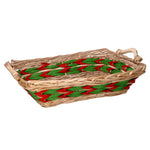 Cesto vimini intreccio verde rosso naturale rettangolare cm53x38h13