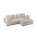 Divano Calgary beige penisola reversibile Caratteristiche:Divano con penisola.Penisola reversibile.Struttura truciolare di pino.Imbottitura schiuma di poliuretano 30kg/m3.Rivestimento Soro tessuto poliestere 100%.Colore Soro 23 beige.Misure: L 270 x P 110/180 x H 88 cm. Altezza seduta 42...