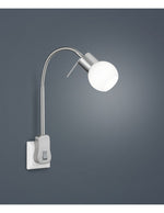L'applique FRED di Trio Lighting è composta da una struttura con interruttore a parete e braccio flessibile in metallo finitura nichel opaco, interruttore ON/OFF incluso.