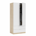 Armadio 2 Ante e 2 cassetti Cm. 80 x 52 x 180   SPECIFICHE: LINEA LC struttura rovere Bianco due ante e due cassetti Colore bianco/rovere DIMENSIONI: Dimensioni cm 80 x 52 x 180h