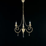 Lampadario in ferro Avorio tre luci decorazione decapè e strass 50x h67 cm