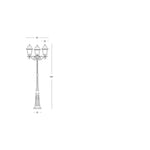 Lampione 3 luci struttura in pressofusione di alluminio nero diffusori in vetro trasparente