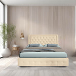 Letto matrimoniale contenitore Buttonsquare champagne con testiera trapuntata