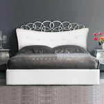 Letto matrimoniale bianco con testiera imbottita in ecopelle bianca con bottoni strass