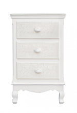 Mdf. Ripiani E Frontali Con Motivi Floreali Intarsiati. Rifinitura Con Vernice Opaca A Base D'Acqua. Maniglie In Poliresina. Misure = 41a - 33.5b - 68,5h