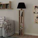 Lampada da terra con libreria rovere e parlume nero