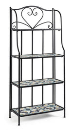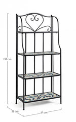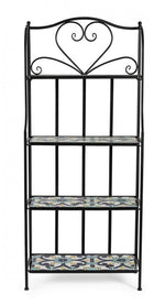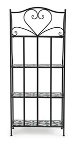 Libreria pieghevole Positano 4 piani in metallo stile country cm 57x28x133hStruttura in acciaio trattato per l'esterno (e-coating).Verniciato a polvere epossidica.Piani in ceramica.Pieghevole.Misure:Lunghezza cm 57;Larghezza cm 28;Altezza cm 133.