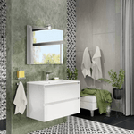 Mobile bagno sospeso, dotato di due cassettoni 80 cm con chiusura ammortizzata. Il Lavabo è in ceramica. Lo specchio è incluso nel prezzo.