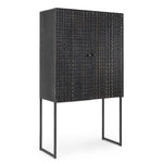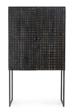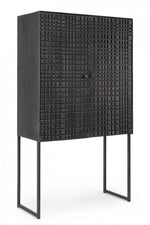 Cassetti e ante in legno di mango con finitura a base di nitrocellulosa.