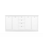 Il mobile credenza con cassetti Modello Landwood 52 è realizzato in truciolato di legno di alta qualità. Con una struttura colore bianco, questo mobile presenta 4 ante e 4 cassetti, tutti con bordi ABS e maniglie a pomelli. Le dimensioni di questo mobile sono: larghezza 200 cm, profondità 40 cm e altezza 90 cm.