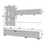 Dimensione base porta tv con 3 ribalte e 2 scomparti a vista
