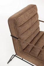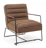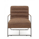 Poltrona con braccioli e struttura in acciaio e rivestimento in simil pelle marrone