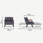 3 in uno: poltrona, poltrona con poggiapiedi e letto singolo.