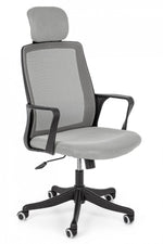 Sedia ufficio con braccioli grigio in tessutoBase in nylon ø60 cm. Ruote in plastica (pu).Seduta e poggiatesta imbottiti in schiuma e rivestita in tessuto a rete poliestere 100%.Schienale in plastica (pp) rivestito in tessuto a rete...