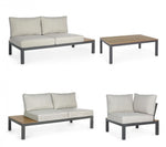 - sedute e piano tavolino in polywood (materiale composito dall'aspetto simile al legno) 90% polistirene 10% sbs color teak.