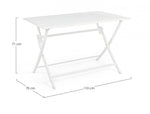 Tavolo per esterno in alluminio Bianco ELIN 110x70x h71 cm Specifiche Tavolo in alluminio Color Bianco, verniciato a polvere (poliestere) Pieghevole Ideale per quattro persone Dimensioni Lunghezza 110 cm Larghezza 70 cm Altezza 71 cm....