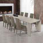 Una consolle che si traforma in un tavolo lungo per 10 persone.