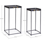 Dimensioni Tavolino G: Lunghezza: 32 cm Profondità: 31 cm Altezza: 63,5 cm ; Dimensioni Tavolino P: Lunghezza: 26 cm Profondità: 25 cm Altezza: 58,5 cm