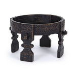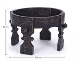 Tavolino nero in legno stile fusion Ø50a - 35hLegno di mango con decorazioni intarsiate. Finitura a cera con effetto anticato.Misure:Diametro cm Ø50;Altezza cm 35.
