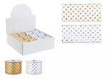 Nastro Pois 4M è realizzato al 100% in nylon di alta qualità. Questo nastro è perfetto per aggiungere un tocco di stile e colore ai tuoi progetti creativi. Il set include 12 rotoli di nastro, ciascuno lungo 4 metri.