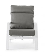 struttura in alluminio verniciata a polvere (poliestere). schienale reclinabile in libera posizione e seduta in textilene 1x1. cuscini sfoderabili con tessuto olefin (100% polipropilene).