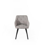 La sedia presenta un rivestimento in tessuto di alta qualità che offre comfort e durata. Le gambe e la struttura in metallo garantiscono stabilità e resistenza nel tempo. Il rivestimento grigio chiaro aggiunge un tocco di eleganza e si abbina facilmente a qualsiasi arredamento. Le gambe nere conferiscono un contrasto moderno e audace.