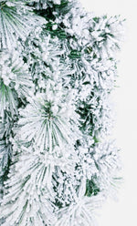 Innevato. Struttura in metallo. Materiale degli aghi in PVC. Rami effetto spazzola che riproducono la struttura degli aghi di pino.