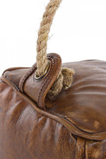 imbottitura in cotone, rivestimento in vera pelle. manico in corda.