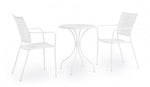 acciaio trattato per esterno (e-coating) e verniciato a polvere (poliestere) con finitura opaca. impilabile. imballo senza cartone.