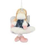 13X17Cm Pink/Blue Velvet Hanging Angel