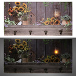 Appendino legno 4 posti con led girasoli cm60x30x1,8