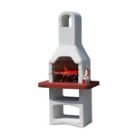 Barbecue con focolare e piano lavoro colorati, realizzato con materiali altamente refrattari.