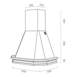 Cappa aspirante RUSTICA 5 LATI in acciaio inox bianco e cornice in legno colore tabacco cm 90