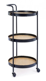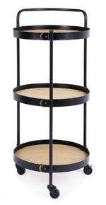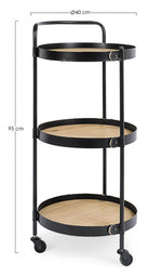 Carrello vintage 3 ripiani Jerrod Caratteristiche del prodotto: Struttura in acciaio verniciata a polvere epossidica ripiani in mdf con finitura a base d'acqua Misure del prodotto: cm 40 diametro cm 95 altezza