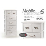 Cassettiera multiuso bianca in legno Con 6 cassetti cm 40 x 29 x 90 h