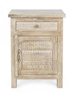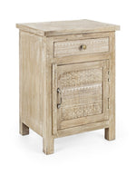 Comodino 1 anta e 1 cassetto Mayra in legno naturale