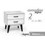 Comodino bianco due cassetti Con piedini neri cm 48 x 38 x 50 h Legno nobilitato