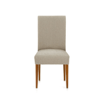 Coprisedia alta qualità. Tessuto elastico. Materiale 35% cotone, 60% poliestere e 5% elastomero. Misura seduta da 40 a 50 cm. Misura schienale da 40 a 55 cm. Colore beige. Lavabile. Made in Spain. SC214911. Confezione contiene set per rivestire due sedie.