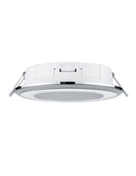 Il faretto rotondo da incasso della serie AURA di Trio Lighting é realizzato in plastica finitura cromo, con alette laterali che facilitano l'installazione nei controsoffitti in cartongesso.