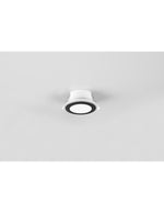 Il faretto rotondo da incasso della serie AURA di Trio Lighting è realizzato in plastica finitura nero opaco, con alette laterali che facilitano l'installazione nei controsoffitti in cartongesso.