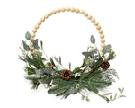 Ghirlanda moderna con palline di legno glitterate, pigne, eucalipto per interni