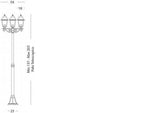 Palo telescopico in pressofusione di alluminio. Diffusori in vetro trasparente. Altezza massima della lampada: 170mm. Alimentazione 230 V ~ 50 Hz. Classe di protezione: IP43. Numero di lampade: 3. Potenza massima delle lampade: 60W.